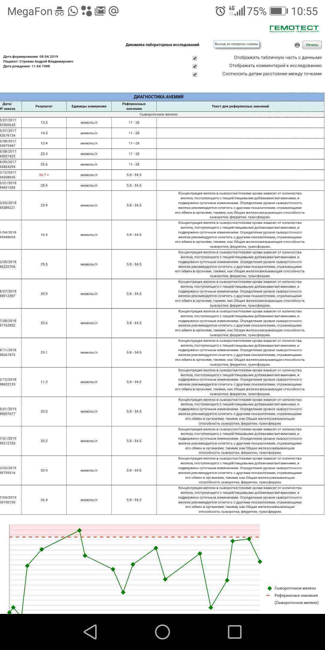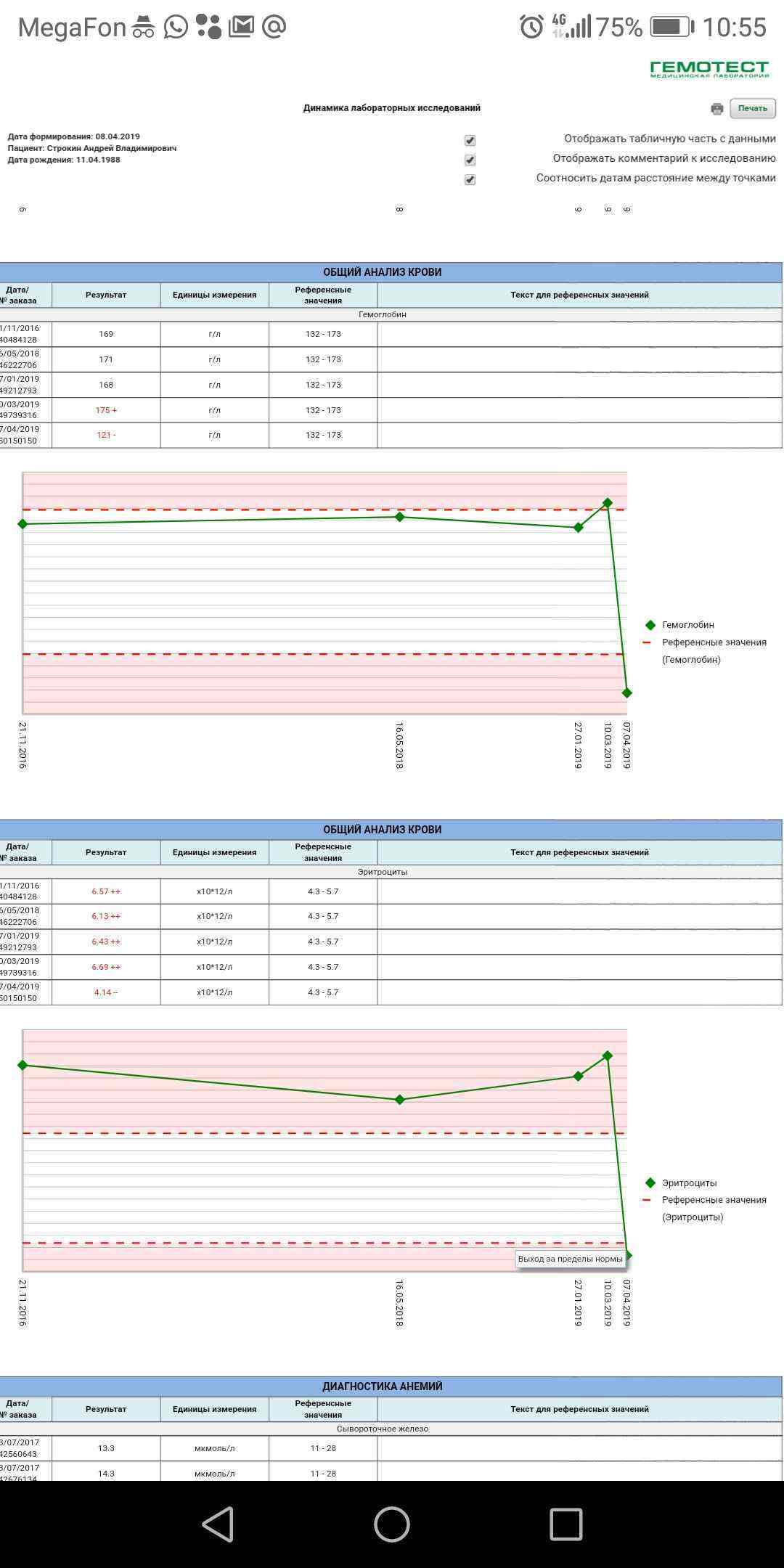 Нет. Гепатита нет. Посмотрел свою динамику результатов по эритроцитам, гемаглобину и сывороточному железу. Эритроциты всегда были выше нормы, а потом резко упали за 2 недели... Сыворотка всегда в норме. Приложил...