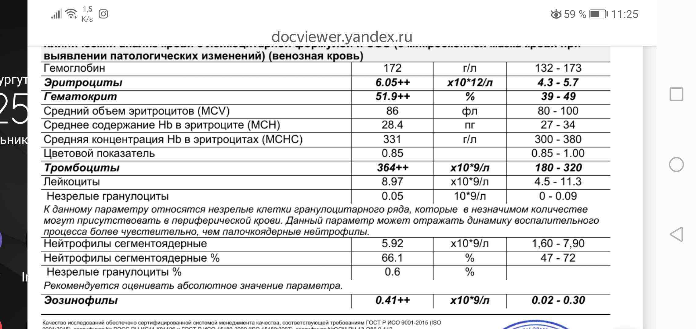 На прошлых анализах Гематокрит был 54,1 здесь пооучш стал.