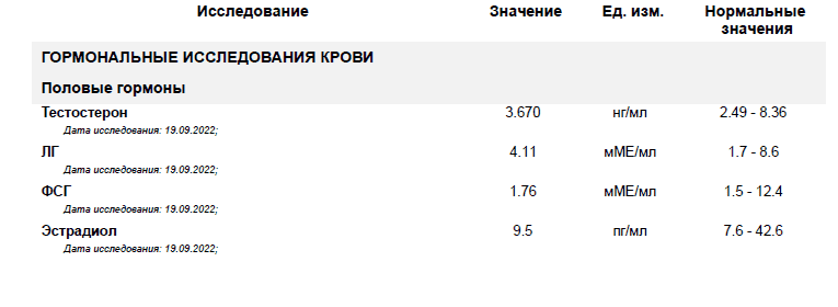 После затяжного курса недовосстановился из-за жуткой аллергии по весне, затем по совету сильных мира сего пропил кломид месяцок. После, через пару месяцев, сдал анализы. Не то чтоб збс, можно было и лучше)) Может кломид эрговский пустой был, не знаю. Состояние на этом уровне гормонов очень так себе. Сил нет, настроения нет, плечи болят, силовые как в 14 лет и т.д. :( Может тамокс аптечный попробовать? В январе хочу на курс залезать, не знаю есть ли смысл дальше пытаться восстановиться, но с такими гормонами зал - это каторга с неподъёмными весами))