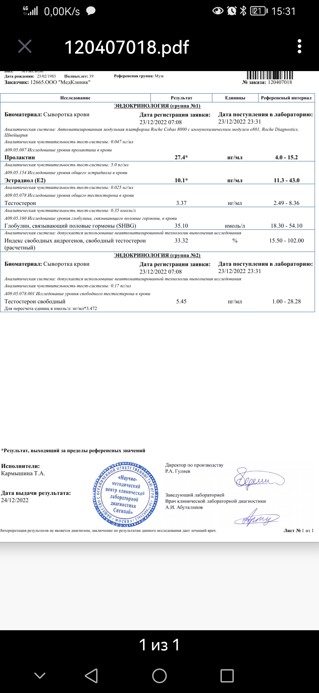 Тестостерон ниже минимальных референтов, начинайте ПКТ уже сейчас.