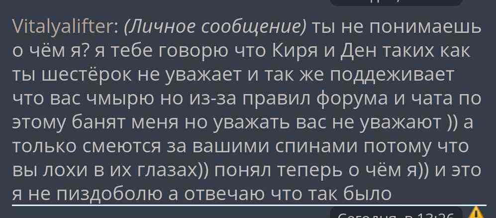 @Vitalyalifter, ты мне в этой теме писал, что срать на форуме не будешь, что решать все будешь в личках. Не люблю пиздаболов, это бан. И все твои мульты полетят туда же.