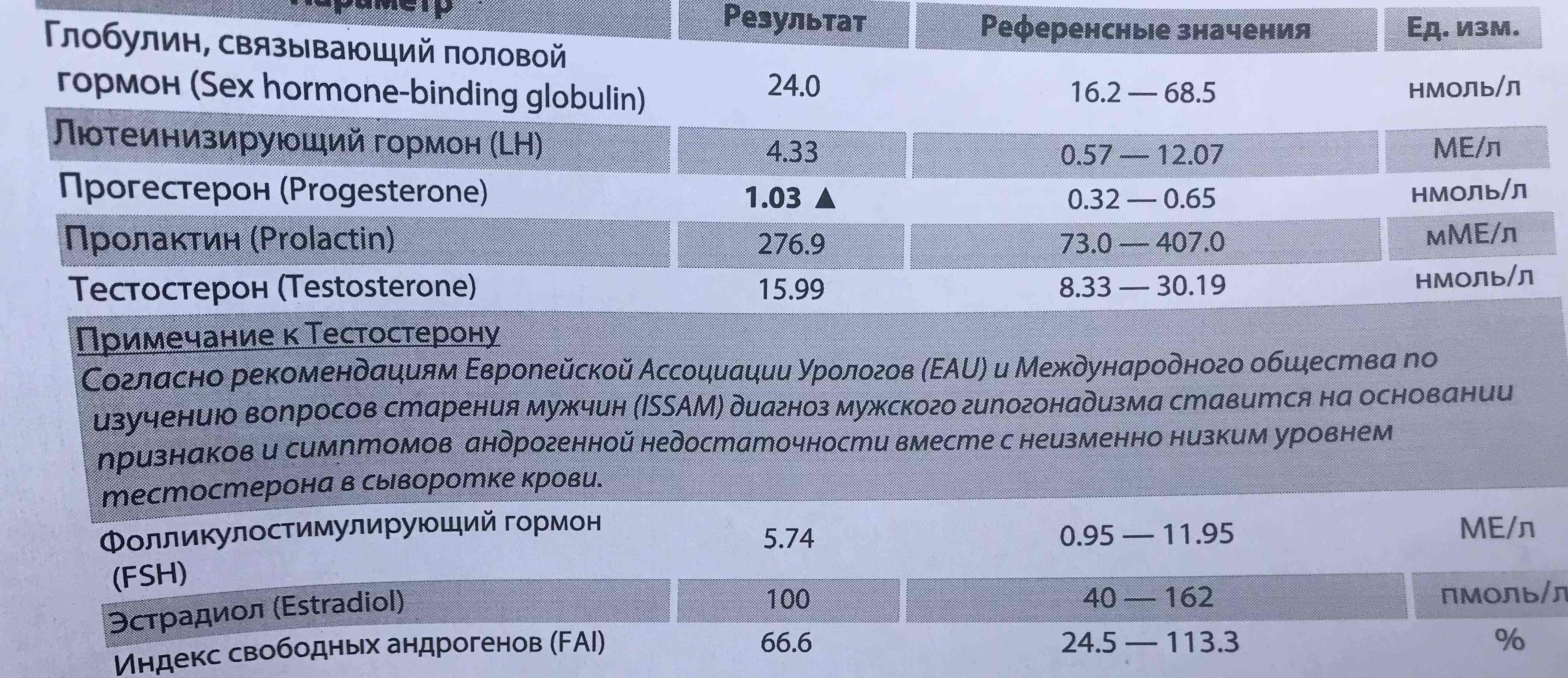 Привет.Ребят хочу начать курс нандролон дека, суст и метан! Сдал анализы перед курсом! И разочаровался в том что прогестерон повышен... не курсил 2 года... в чем причина повышение прогестерона непонятно? Тренировками , нагрузками не злоупотребляю, веду спокойный образ жизни...! Нагрузки небольшие... можно ли начинать курсить и что нужно сделать чтоб прогестерон остался в рефах? Подскажите помогите пожалуйста...