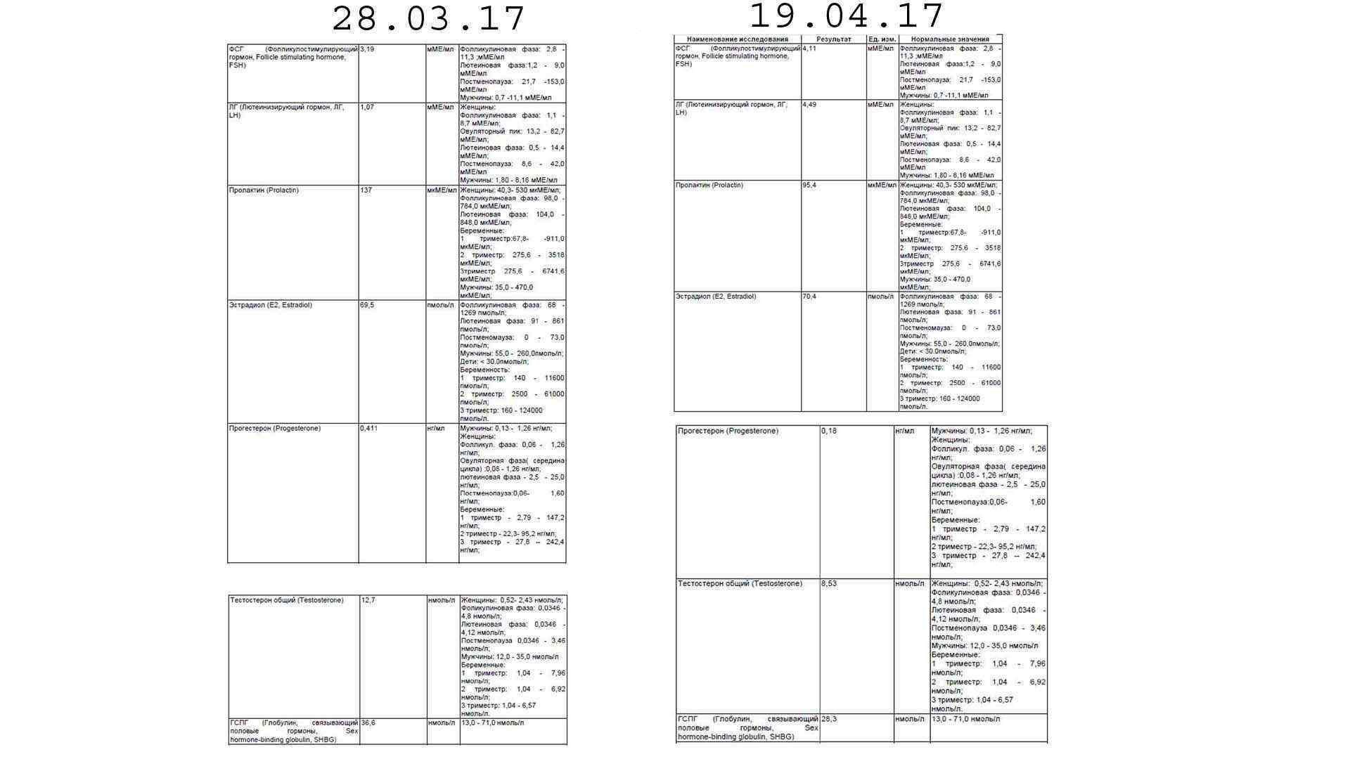 до диеты, вполне вероятно, уровень тестостерона был выше, да, диетой его прибило, причем сильно...Имеешь в виду первый анализ от 28.03.17? Он сделан после диеты. Значит по логике до диеты нормальный уровень теста гипотетически был выше? А сейчас получается мне нужно сделать ПКТ, будто я только курс закончил? А я тут о курсах размечтался...