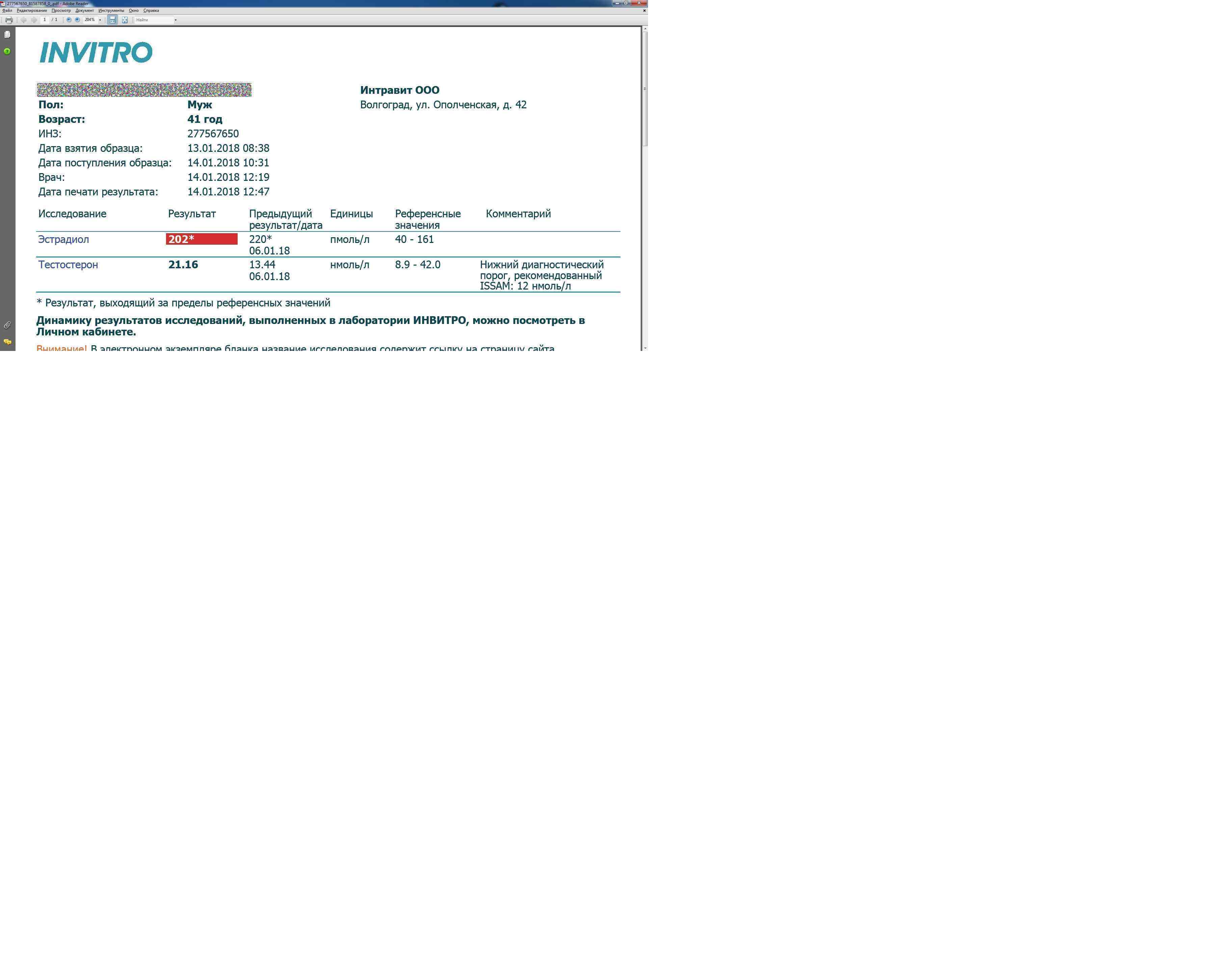 Пил анастрозол по 1 табе через день, действующего вещества меньше чем заявлено, начал приём 11 июля, 24 сдал анализы