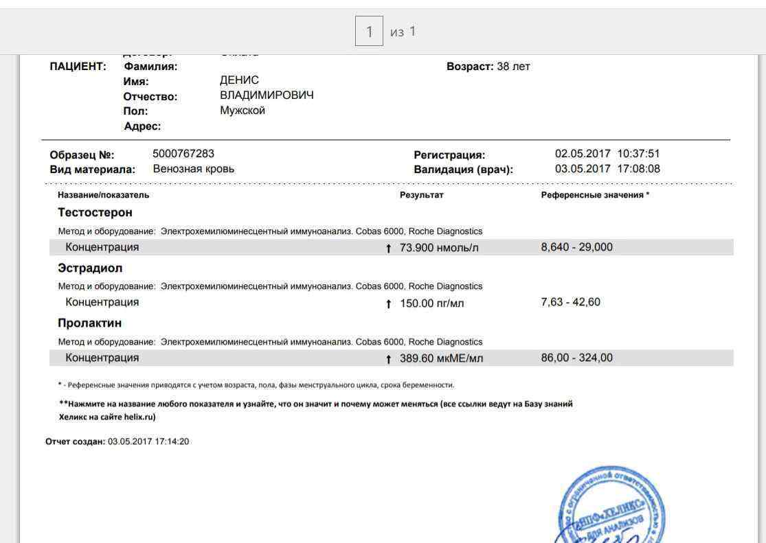 Анализы не сдавал пока. Собираюсь сдать на эстрадиол и пропролактин.