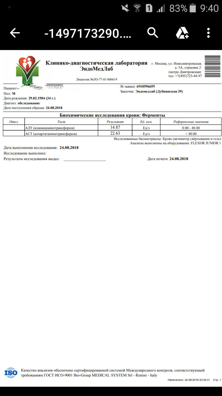 Анализ сдал ровно через 24 часа после последней инъекции. Анализы во вложении.