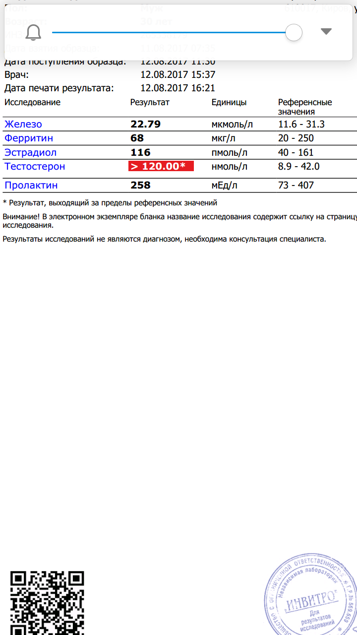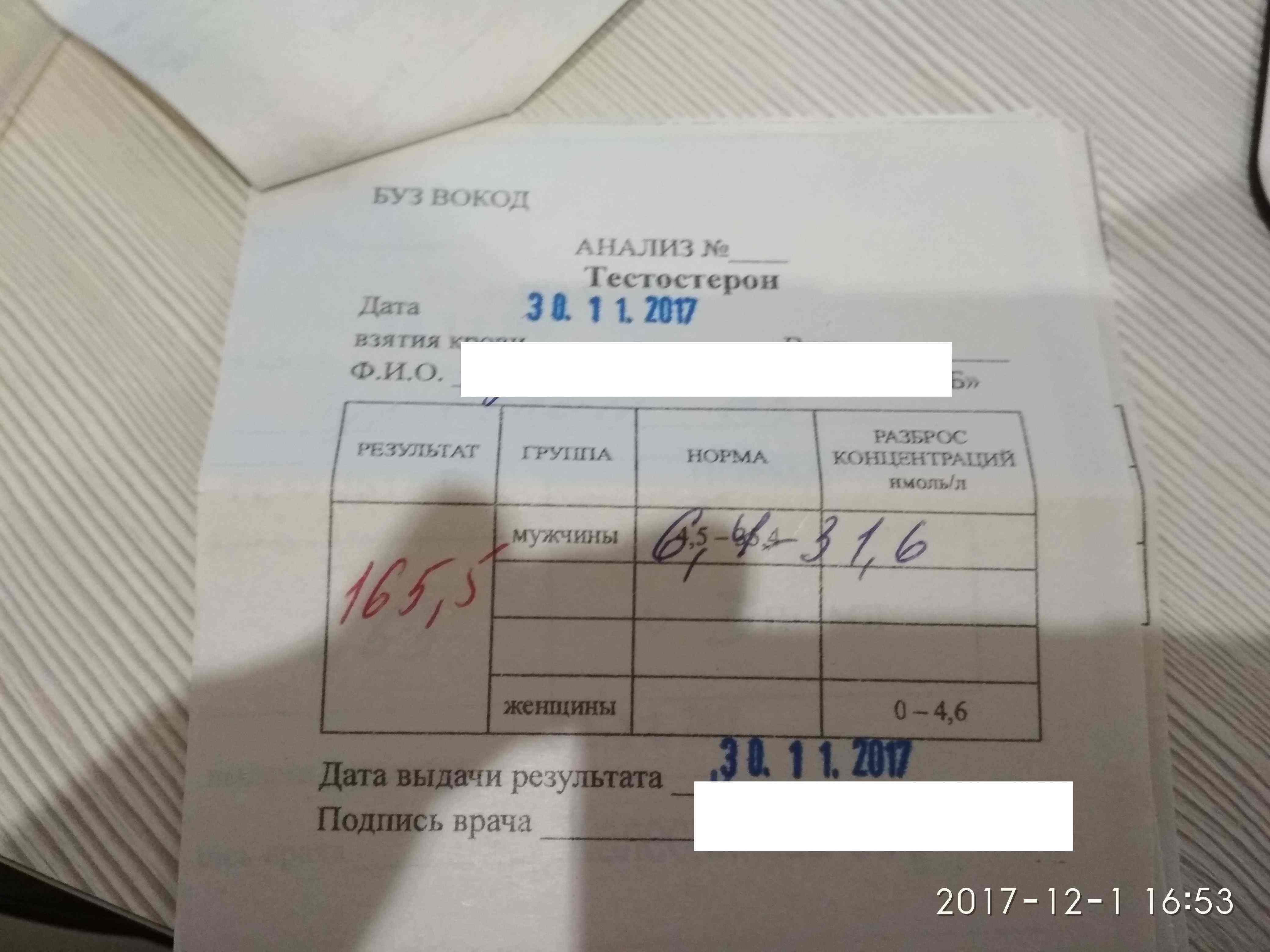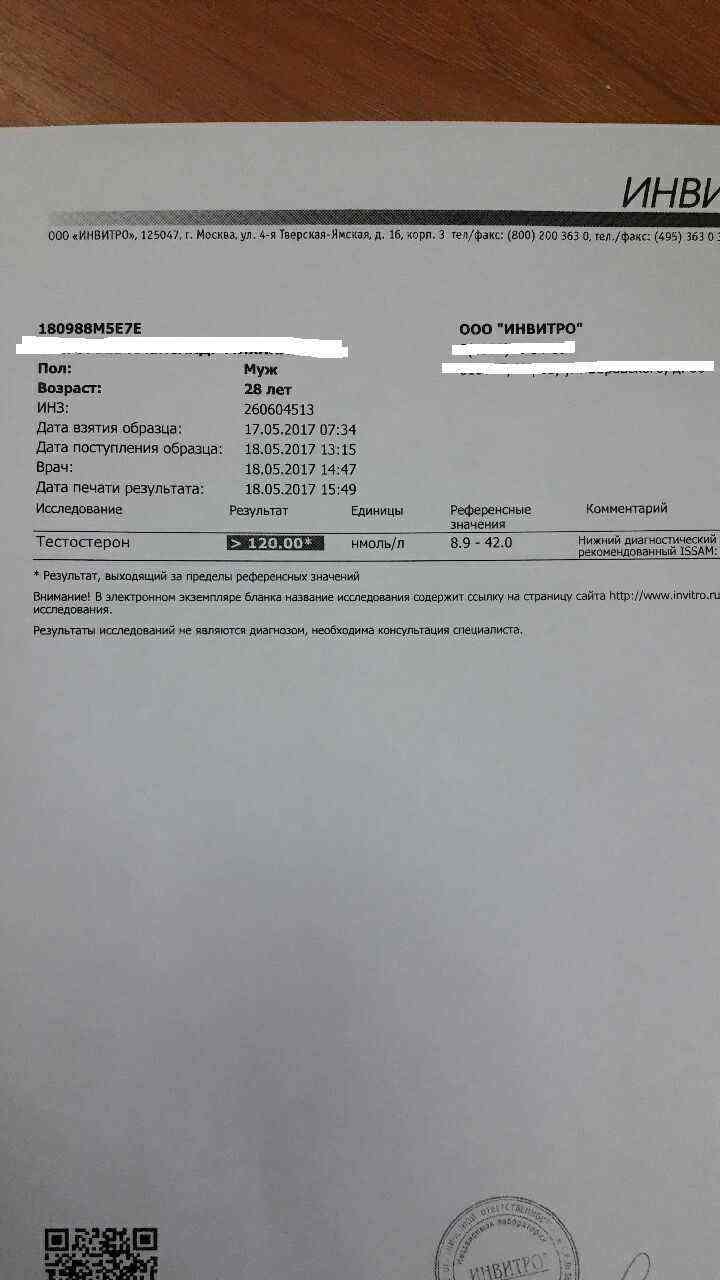 Ну что,покажу и свои анализы,5 неделя курса,600 тесто в неделю. Переведу,это получается 263 н\моль, анализ просто отличный! Спасибо команде Паркер,за отлично проделанную работу! S\n 101.10.17-i