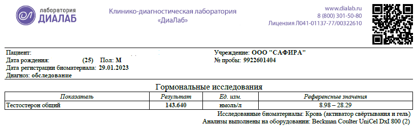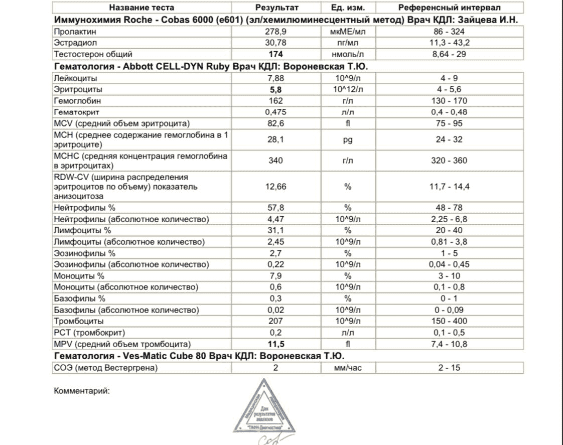 поставил 250 теста и 250 болды в пятницу утром, а сдал во вторник анализ.