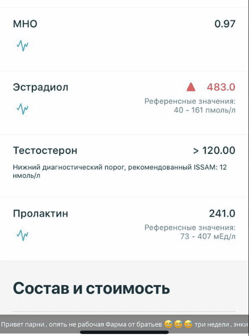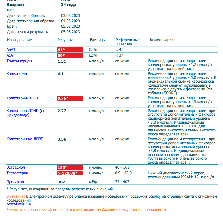 Анализы сданы на 3-й день после инъекций. Болд тоже хороший эстро держит,анастразол не юзал )
