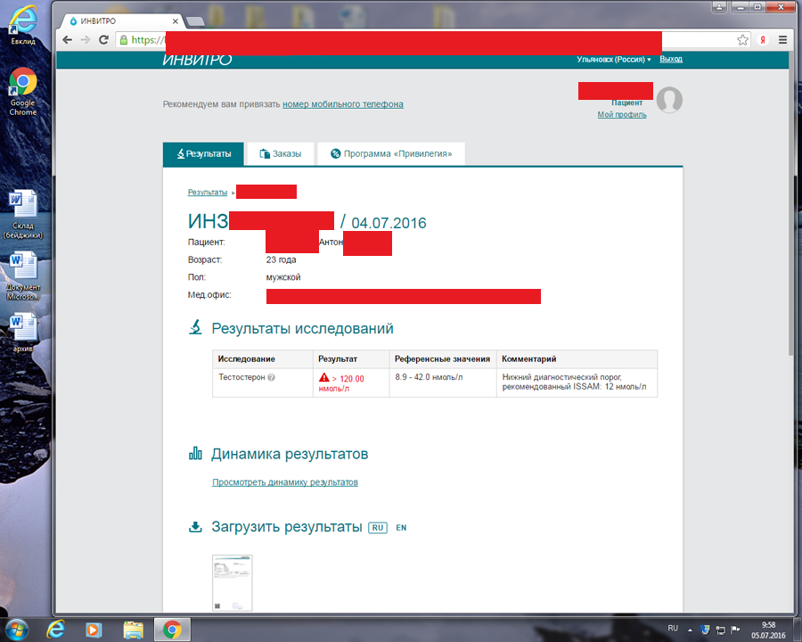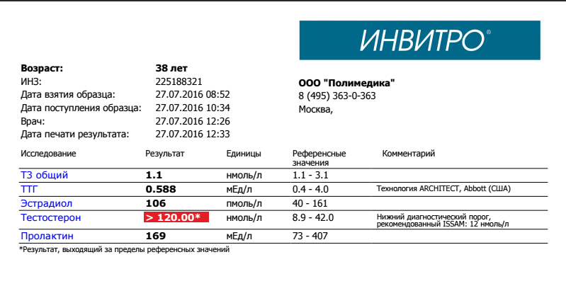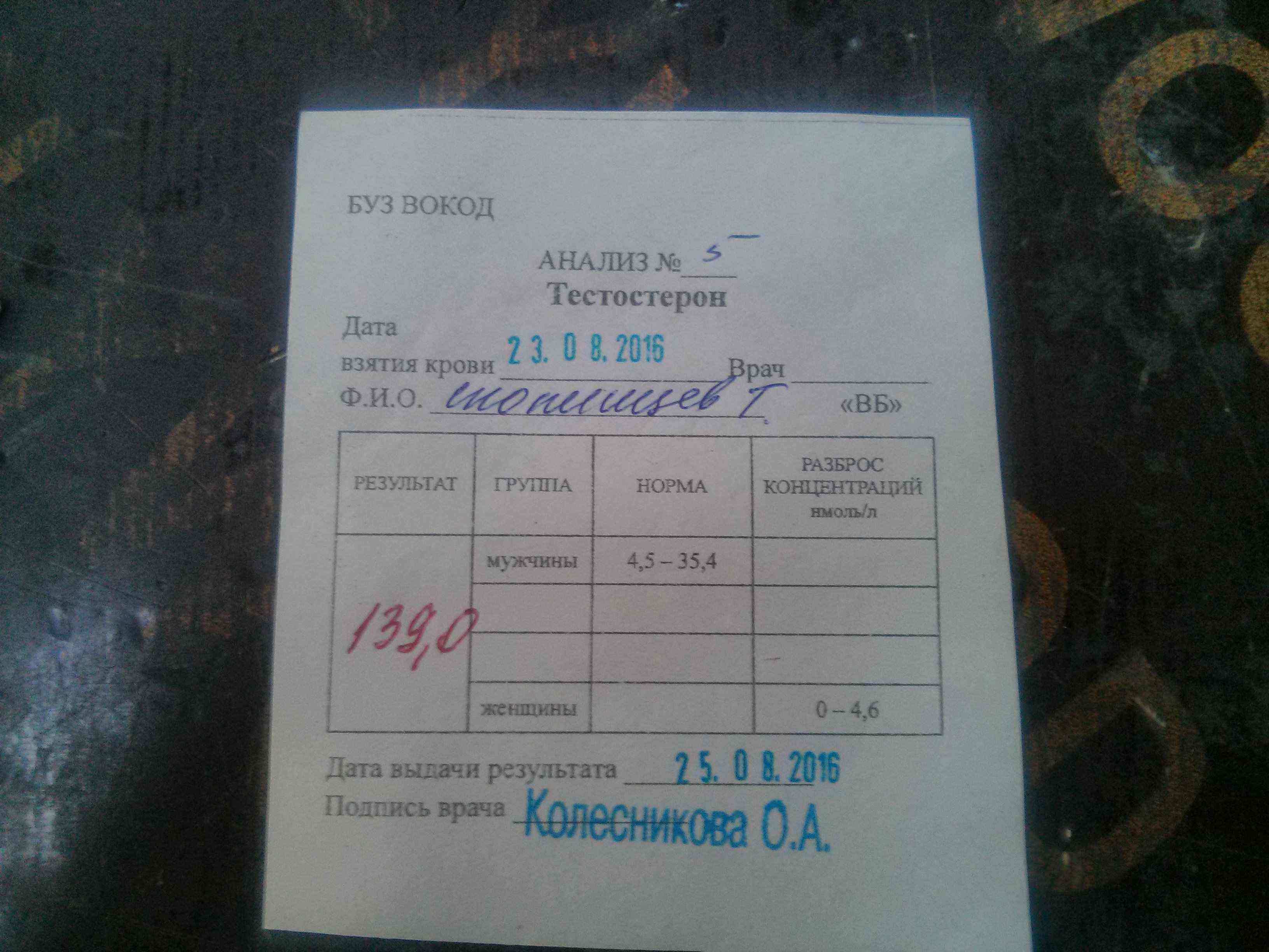 сдал анализ на общий тестостерон сегодня, завтра будут результаты, ставил 24 июня, 30 июня, 3 июля по 250 мг, сдал анализ почти ровно через 24 часа