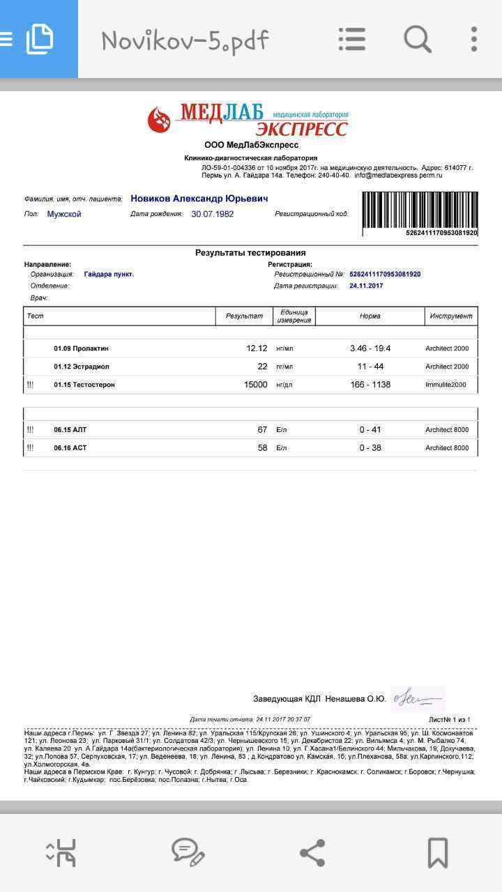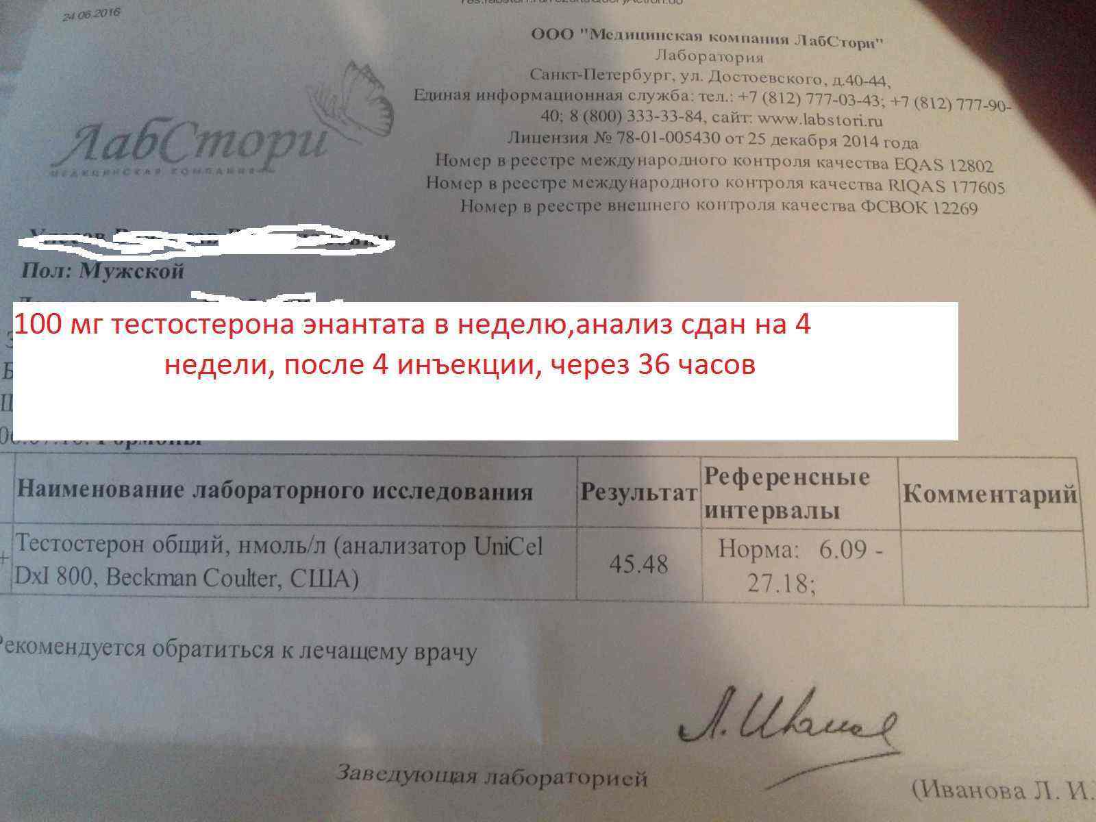 Скину свои анализы. Курс уже идет длинной 18 недель. Тест энантат ставится по 750 в неделю + болд Унд. 1000 в неделю+ трен энантат 400 в нед (10 недель всего).