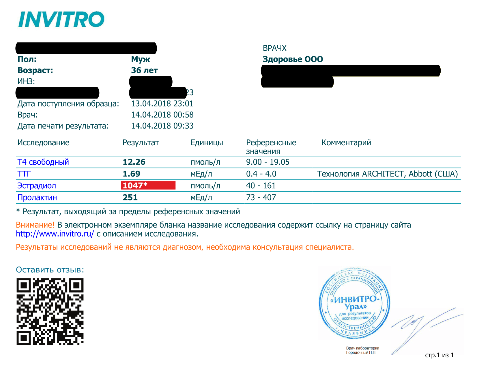 На самом деле были сомнения, т.к. я ничего не чувствовал, и первые анализы на 4й инжект показали Е2 в референсах(в местной небрендовой лабе)! Я расстроился.