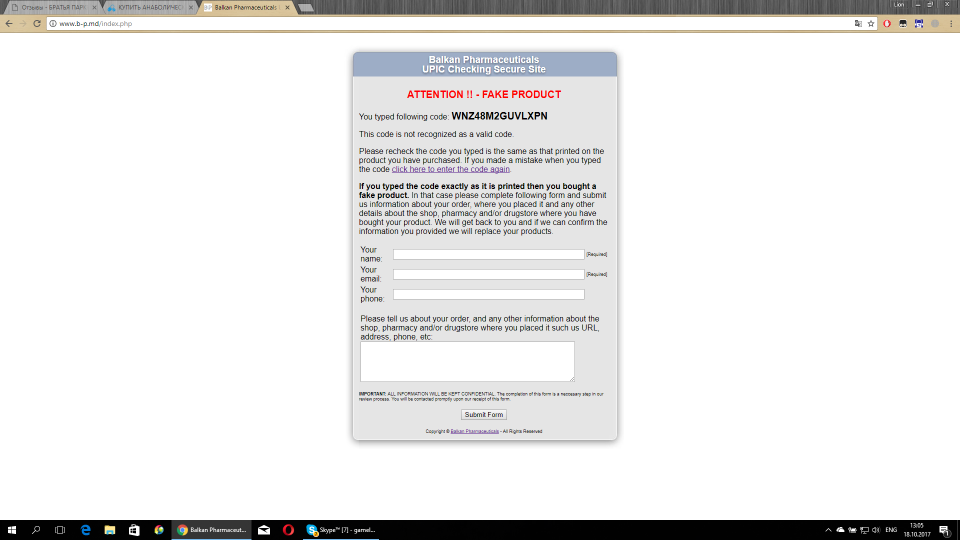 Сделал первый заказ, все приехало за 6 дней в Новосибирск, упаковано от души, поддержка по телеграмму просто лучшая, коды бьются все кроме станазалола от балкана, на мой вопрос почему так, мне сказали, что я не правильно ввожу код.
