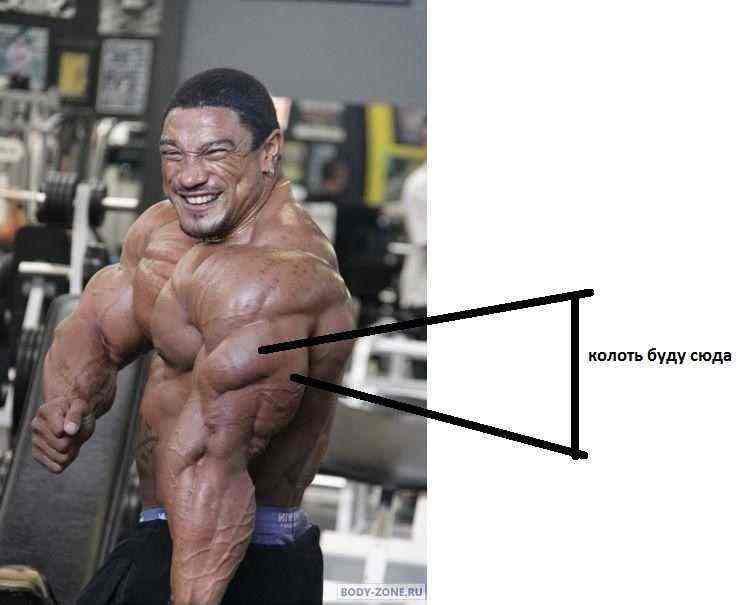 Ставить буду в трицепс, по 2 инъекции в каждую руку: одну в латеральный, а вторую в длинный пучок. Всего получается 4 инъекции.