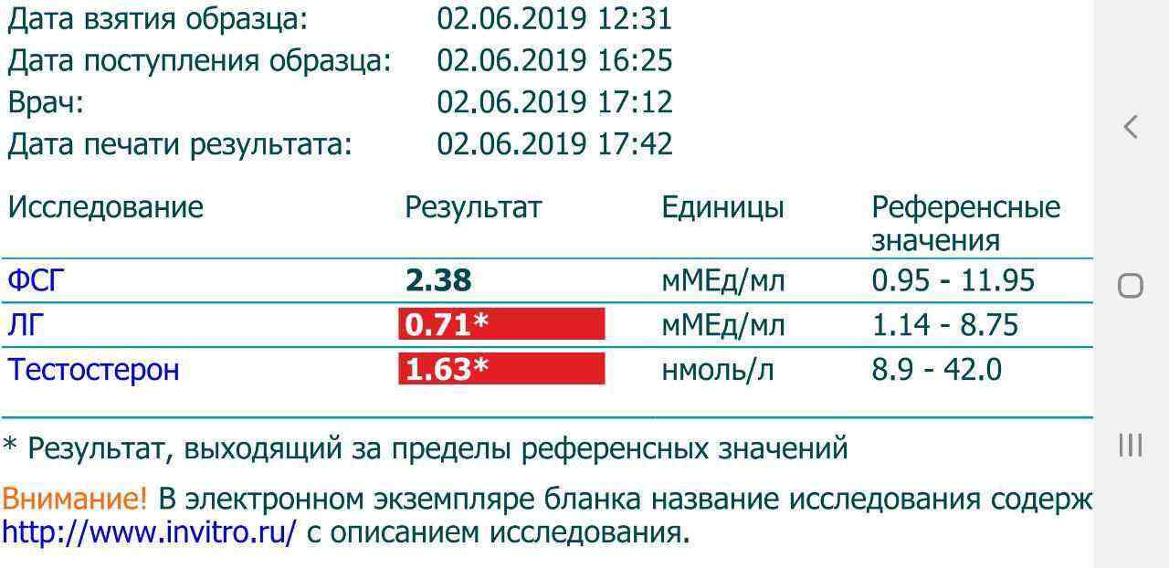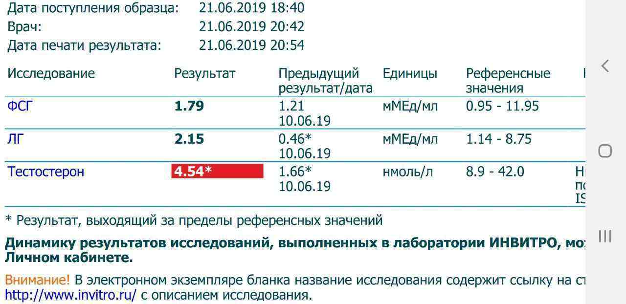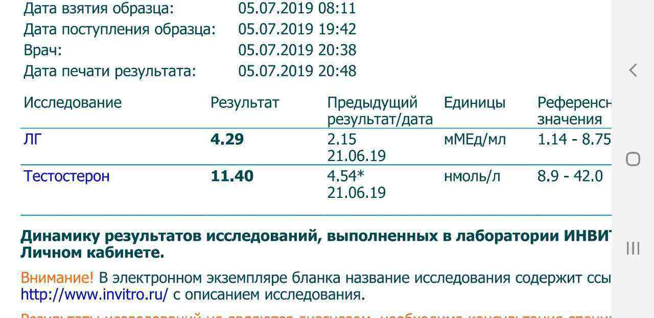 Ранее, на ПКТ, ЛГ у меня взлетал достаточно быстро, а вот тестостерон не очень, сейчас же мы видим другую картину - ЛГ не овердохуя, НО(!) тестостерон уже в норме(ну, почти).